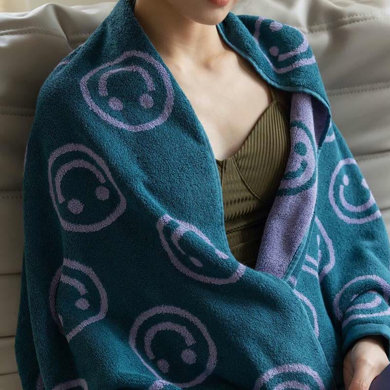 Ownkoti – Weiches Handtuch aus gekämmter Baumwolle mit lächelndem Muster