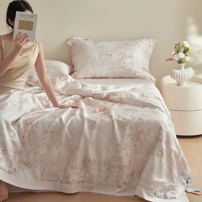 Das pastorale rosa Blumen-Sommerbettwäscheset verleiht Ihrem Schlafzimmer einen süßen, ländlichen Charme. Es besteht aus weichem, atmungsaktivem Stoff und verfügt über zarte rosa Blumenmuster, die für eine frische und romantische Note sorgen – perfekt für kühle, gemütliche Sommernächte.