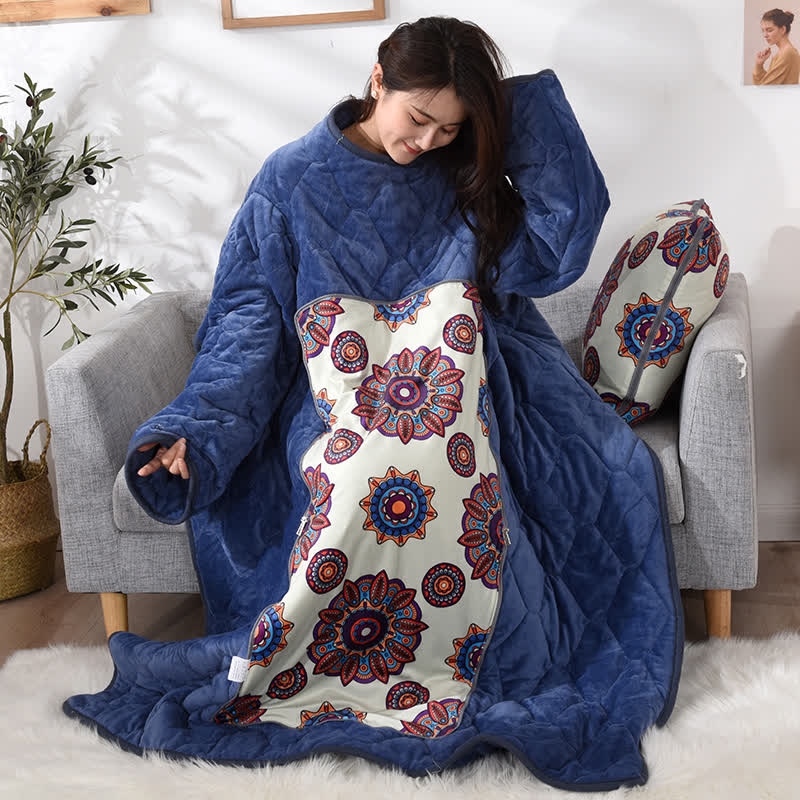 Diese tragbare Steppdecke besteht aus weichem, atmungsaktivem und hautfreundlichem Stoff, der sich glatt anfühlt, pillingresistent ist und hervorragende Wärme bietet. Sie umhüllt den Körper und schützt Schultern, Arme und Beine, dient gefaltet als Kissen und verwandelt sich geöffnet in ein Multifunktionskissen. Sie ist leicht zu verstauen und für verschiedene Umgebungen geeignet. Dank aktivem Druck und Färbung sorgt sie für leuchtende Farben, die weder pillen noch verblassen.