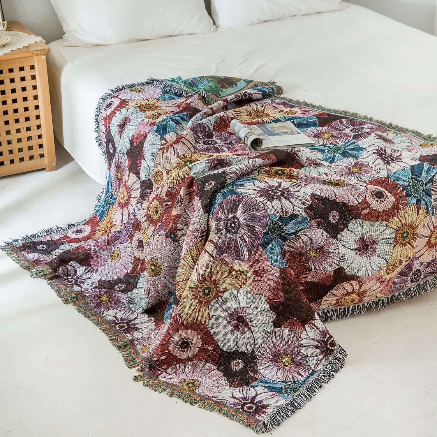 Dieser weiche Wandteppich aus hochwertigem, strapazierfähigem Stoff ist optisch ansprechend und perfekt für gemütliche Abende oder als stilvolle Ergänzung für Ihr Bett. Mit detaillierten Prunkwindenmotiven in leuchtenden Farben fängt er die Schönheit der Natur ein und verleiht Ihrem Zuhause rustikale Wärme und Charakter.