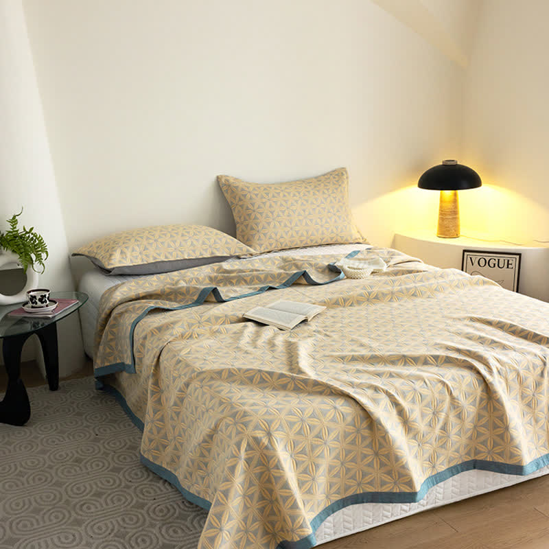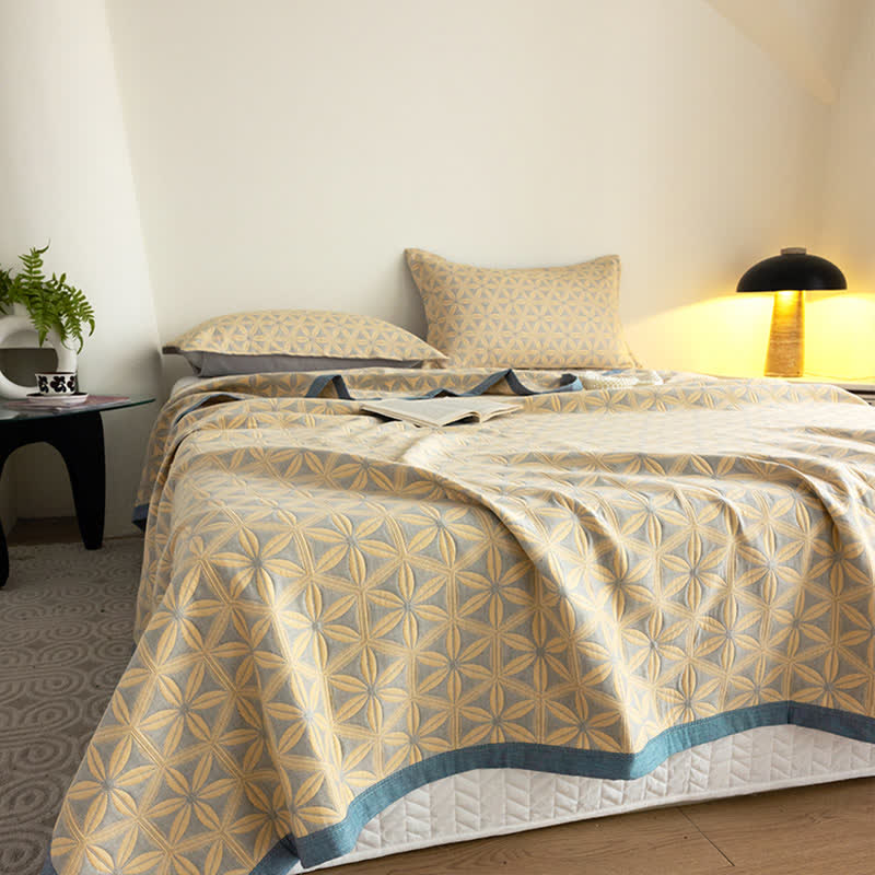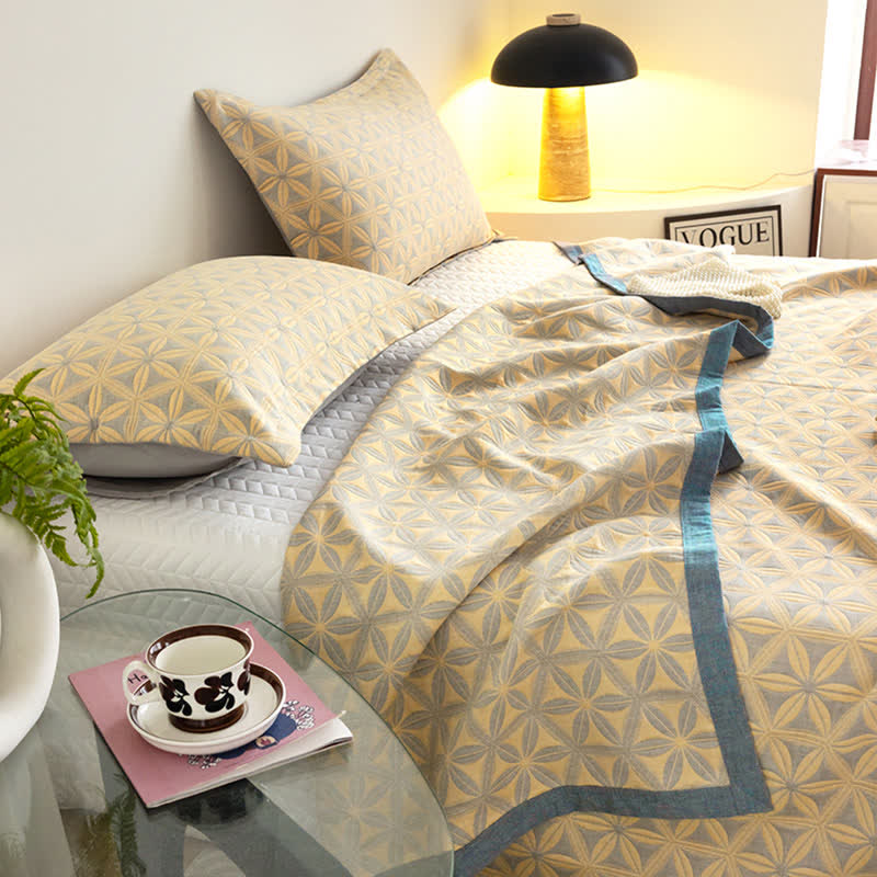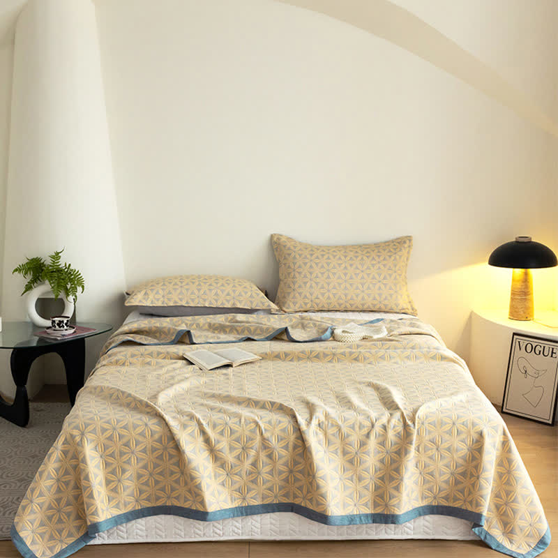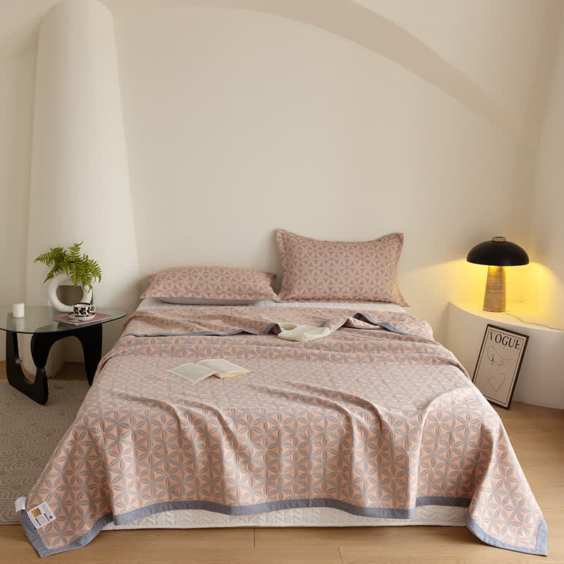 Rustikale dreilagige atmungsaktive Steppdecke aus Baumwollgaze