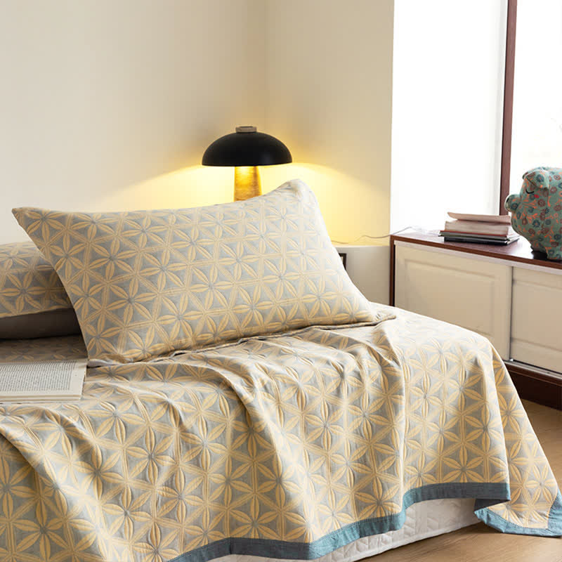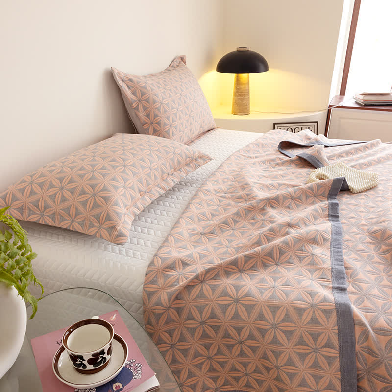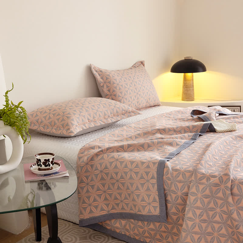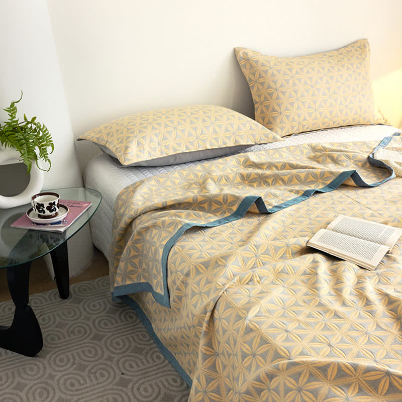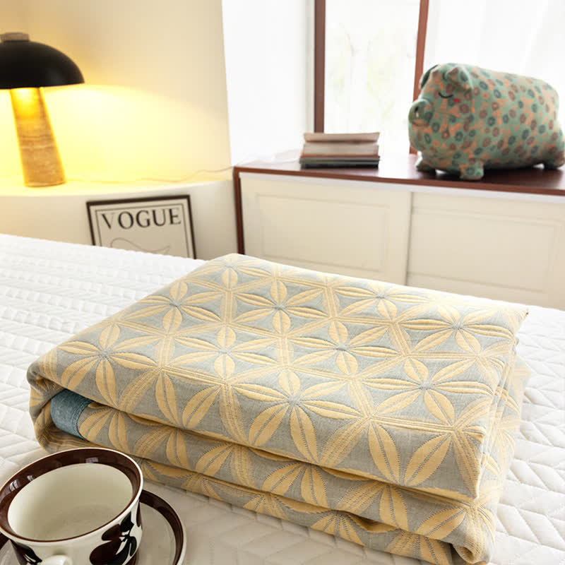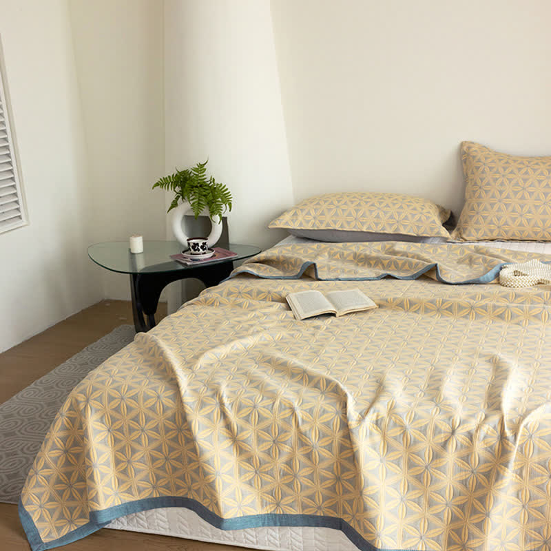 Rustikale dreilagige atmungsaktive Steppdecke aus Baumwollgaze