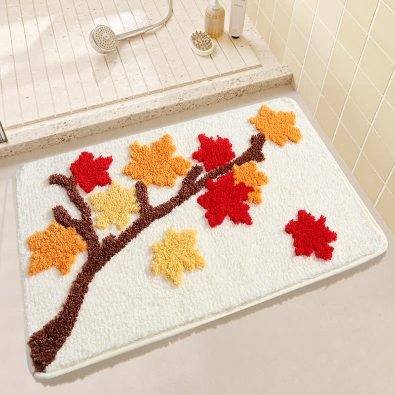 Rustikale, wasserabsorbierende Badematte mit Blättern