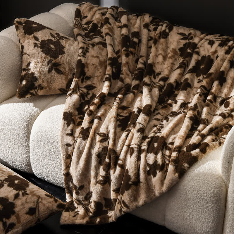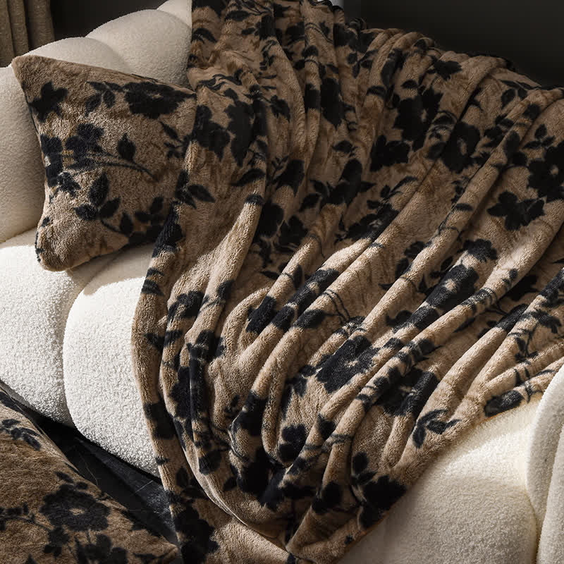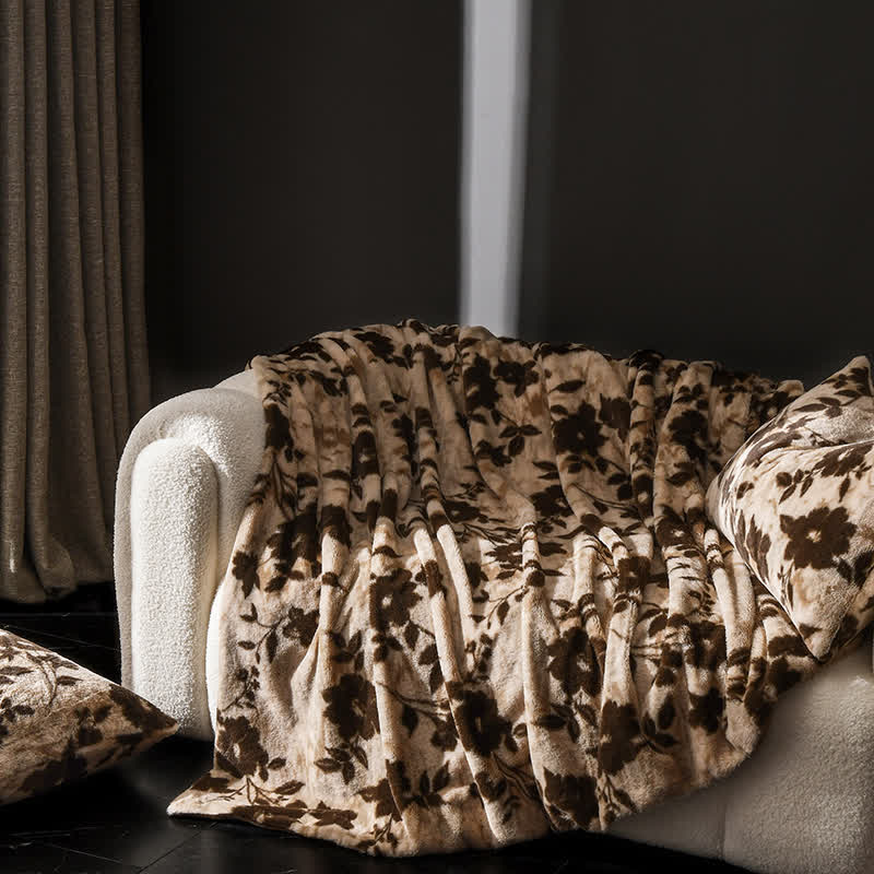 Samt-Sofadecke mit Vintage-Blumenmuster