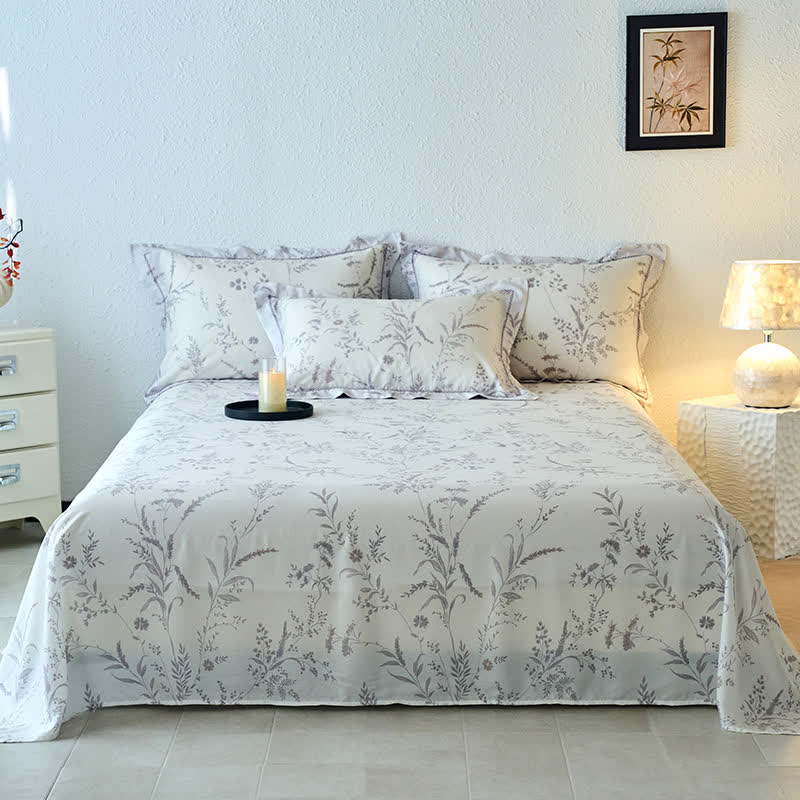 Seidig weiche Sommerdecke mit Lavendeldruck