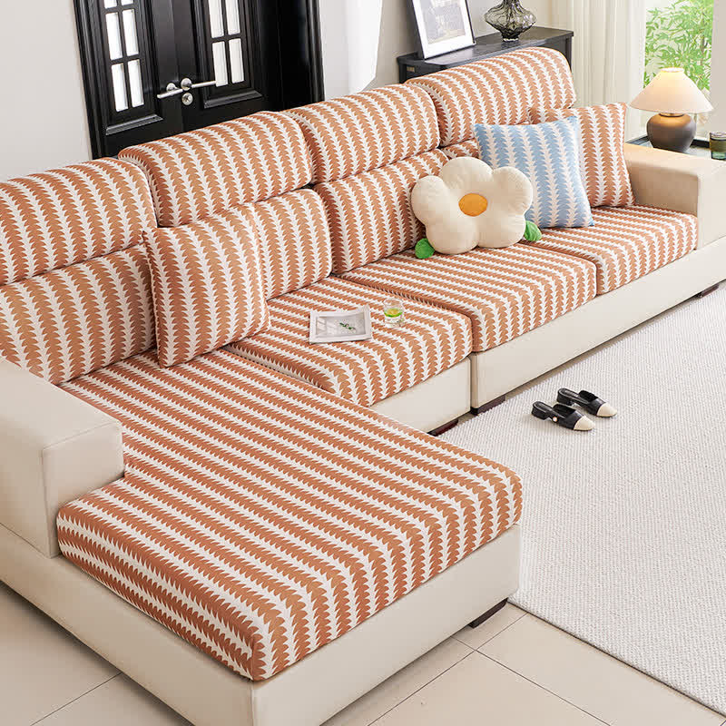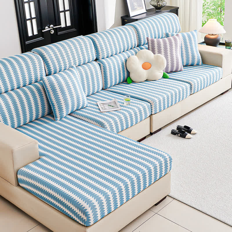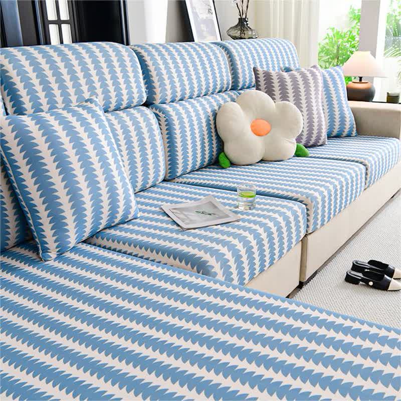 Der Sofabezug verfügt über ein robustes Gummiband, das die Unterseite umschließt und so für einen festen Sitz sorgt. Die Kombination aus Retro-Mode und zeitloser Geometrie unterstreicht nahtlos die Eleganz Ihres Wohnbereichs. Der Bezug aus kühlendem Fasergewebe bietet ein erfrischendes Gefühl, ähnlich dem Berühren von Meerwasser, und sorgt für anhaltende Kühle ohne Hitzestau beim Zurücklehnen.