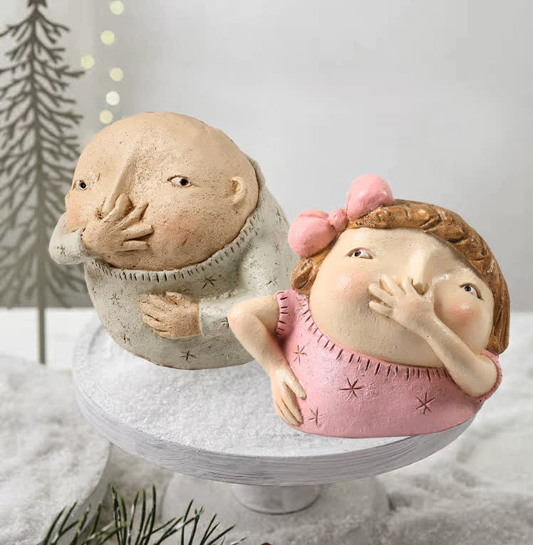 Das charmante Design eines Jungen und eines Mädchens, die sich die Nase zukneifen, verleiht Ihrem Badezimmer eine verspielte Atmosphäre und zaubert garantiert jedem Besucher ein Lächeln ins Gesicht. Diese Statue aus robustem Kunstharz ist langlebig und verleiht Ihrer Einrichtung eine verspielte Note. Obwohl sie ideal für das Badezimmer ist, kann diese entzückende Skulptur auch jeden anderen Raum, wie Schlafzimmer, Wohnbereich oder Büro, optisch aufwerten.