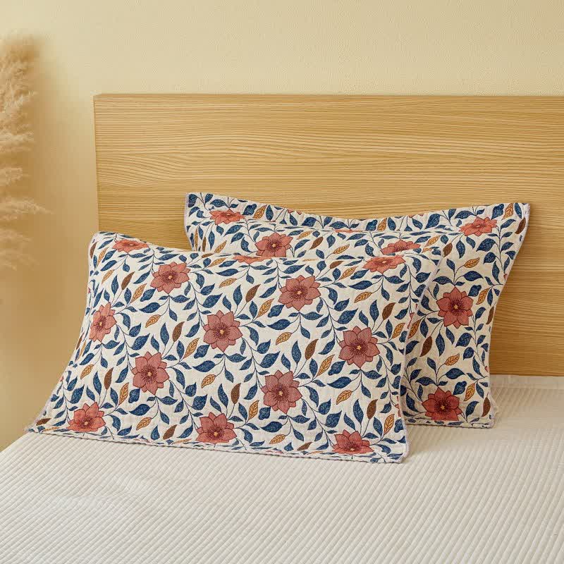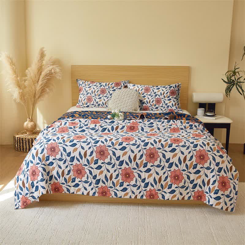 Steppdecke aus Baumwollgaze mit Begonien-Print