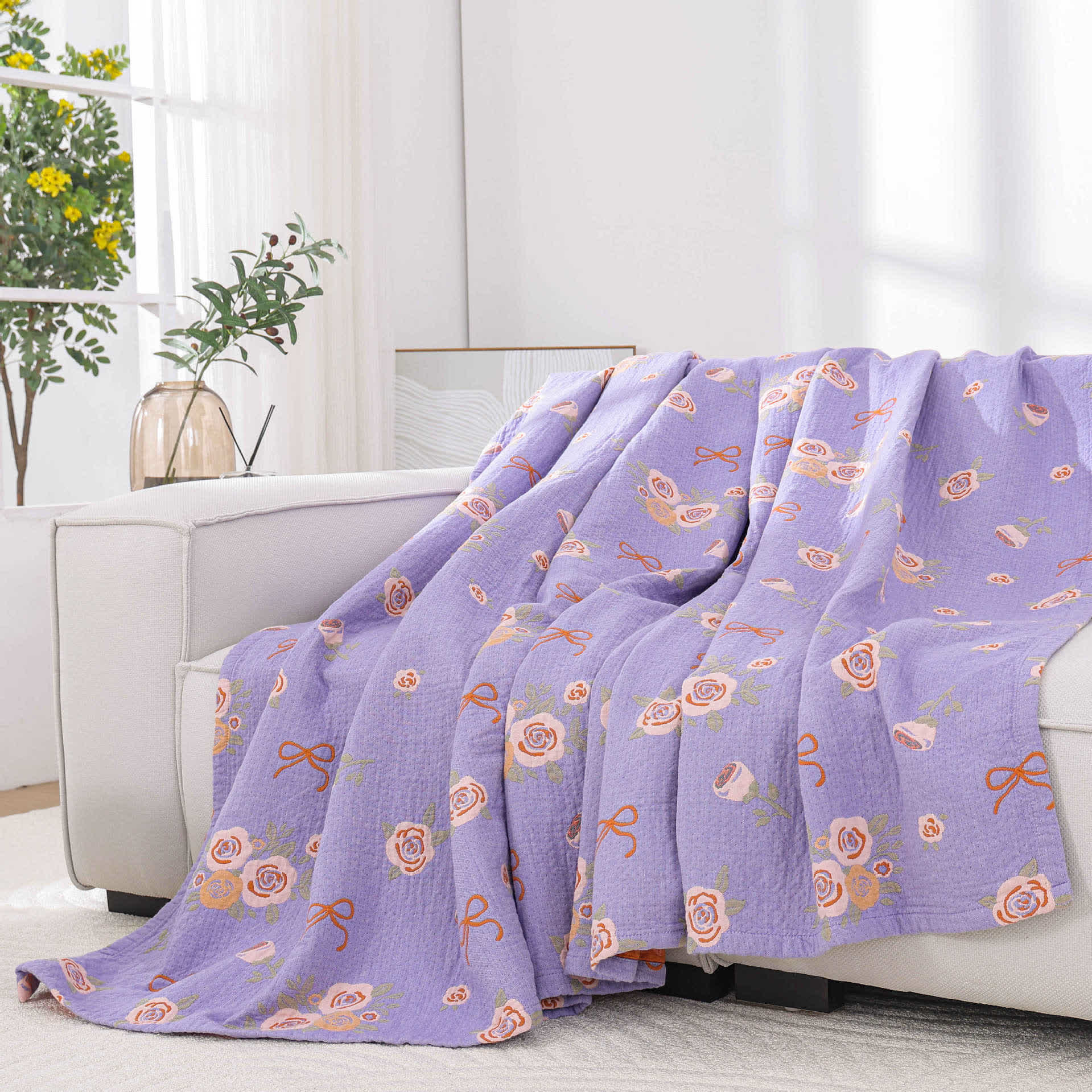 Diese Steppdecke aus hochwertiger Baumwollgaze ist leicht und atmungsaktiv und bietet unvergleichliche Weichheit auf der Haut für maximalen Komfort. Die wunderschönen Schleifenknotendetails in Kombination mit zarten Rosenmotiven schaffen eine sanfte und romantische Atmosphäre und werten Ihren Raum optisch auf.