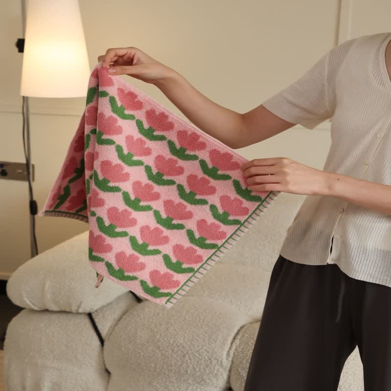 Dieses Handtuch mit charmanten Tulpenmotiven strahlt Eleganz und Finesse aus und bietet die perfekte Balance zwischen Stil und Funktionalität. Seine moderate Dicke ermöglicht ein bequemes Wickeln ohne aufzutragen und macht es ideal für den täglichen Gebrauch. Wählen Sie aus drei verschiedenen Größen, ganz nach Ihren Wünschen.