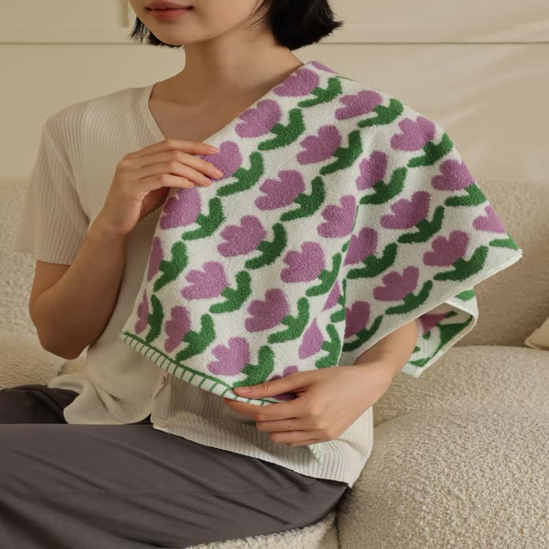 Süßes weiches Badetuch aus Baumwolle mit Tulpenmotiv