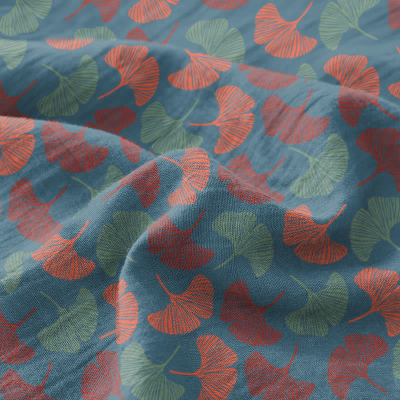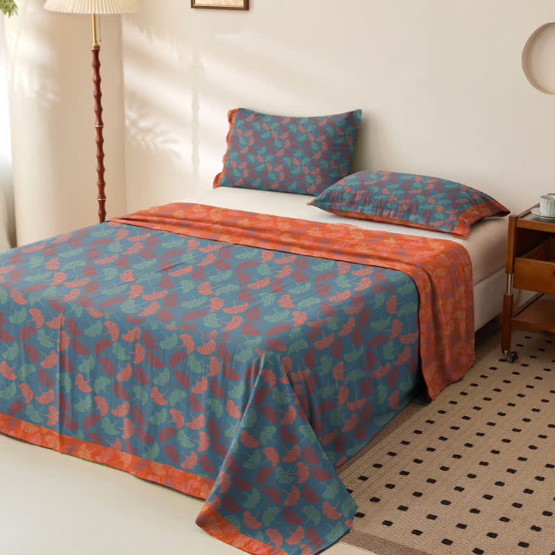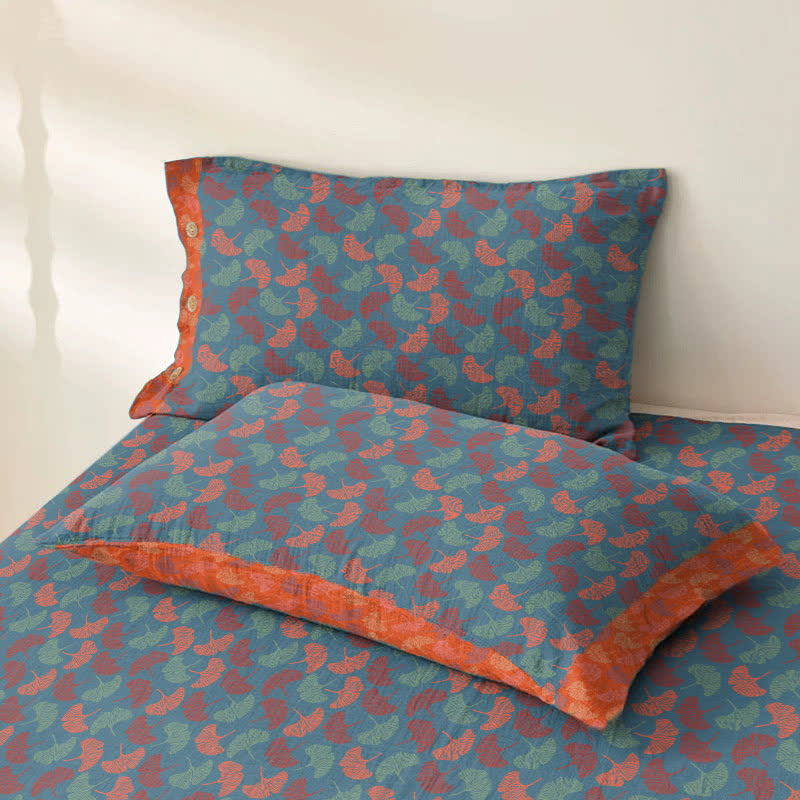 Tagesdecke aus Baumwollgaze mit Ginkgoblättern