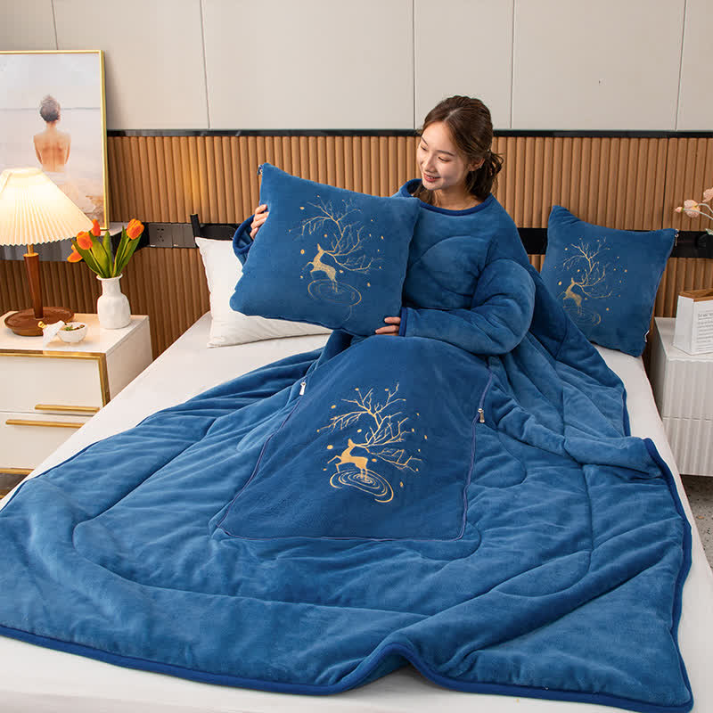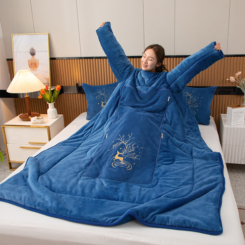 Diese tragbare Steppdecke besteht aus weichem, atmungsaktivem und hautfreundlichem Stoff, der sich glatt anfühlt, pillingresistent ist und hervorragend wärmt. Sie schmiegt sich an den Körper und schützt Schultern, Arme und Beine. Zusammengefaltet dient sie als Kissen, geöffnet verwandelt sie sich in ein multifunktionales Kissen aus Milchsamt. Sie ist leicht zu verstauen und passt in verschiedene Umgebungen. Der aktive Druck und die Färbung sorgen für leuchtende Farben, die weder pillen noch verblassen.