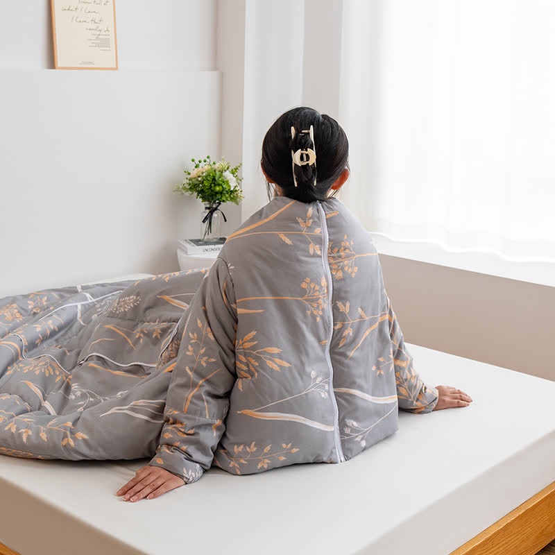 Tragbare Steppdecke mit pastoralem Kissen und Ärmeln