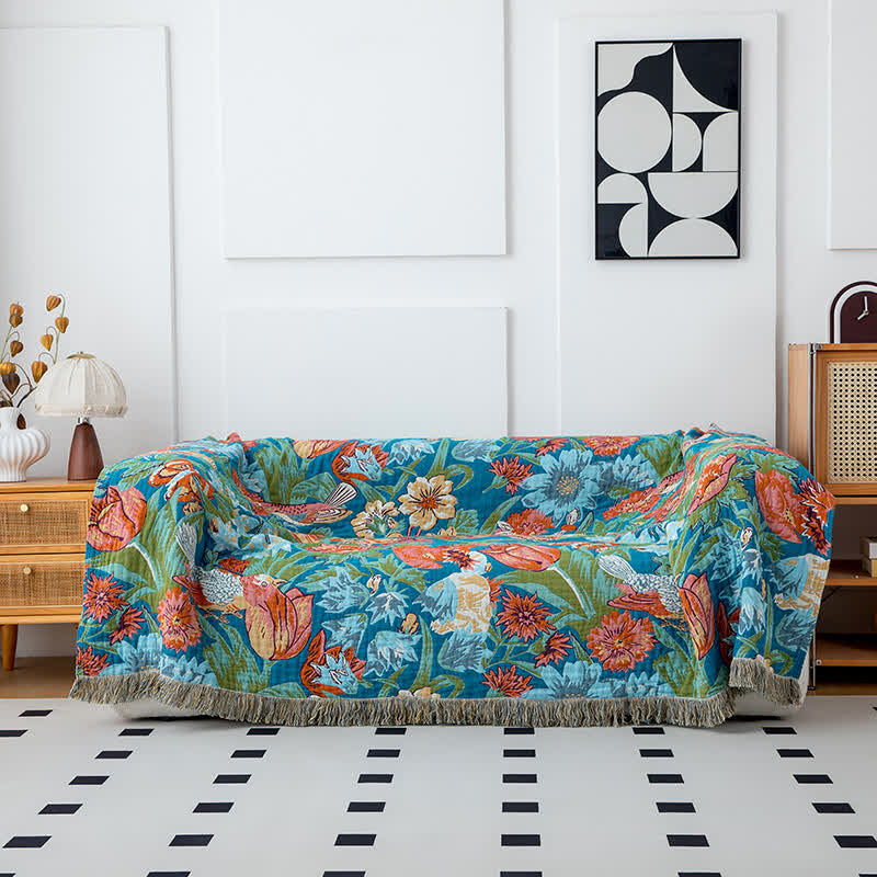 Tulip Gerbera Naturbaumwoll-Quastensteppdecke