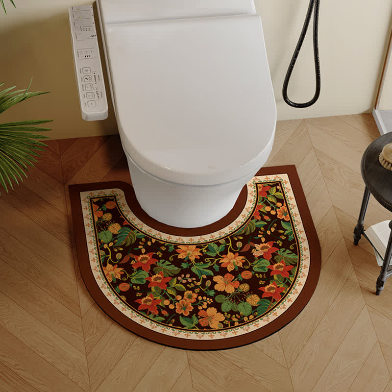 U-förmige Anti-Rutsch-Badematte mit Vintage-Blumenmuster