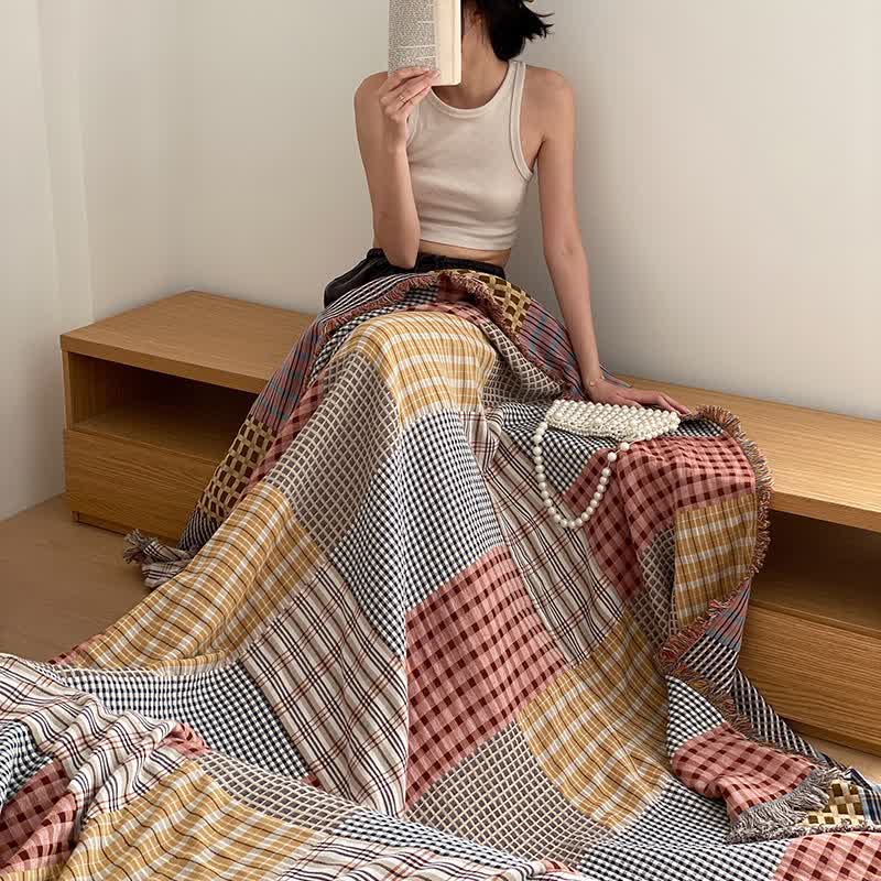 Die vierlagige Baumwollgaze-Quastendecke mit Karomuster vereint klassischen Stil mit mehrlagiger Weichheit. Sie besteht aus atmungsaktiver Baumwollgaze und besticht durch ein zeitloses Karomuster, ein gemütliches vierlagiges Design und charmante Quastenakzente – perfekt für ein entspanntes, heimeliges Gefühl.