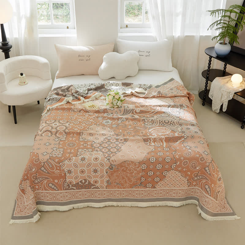 Diese Steppdecke aus einer nahtlosen Mischung der luftigen Eigenschaften von Baumwolle und der exquisiten Anziehungskraft von Gaze bietet einen ruhigen Rückzugsort zum Entspannen an kühlen und warmen Abenden. Ihre opulente Verarbeitung sorgt für unübertroffenen Komfort und eine leichte, umhüllende Haptik, die Sie mit Wärme umhüllt und gleichzeitig die Optik Ihres Wohnambientes steigert.