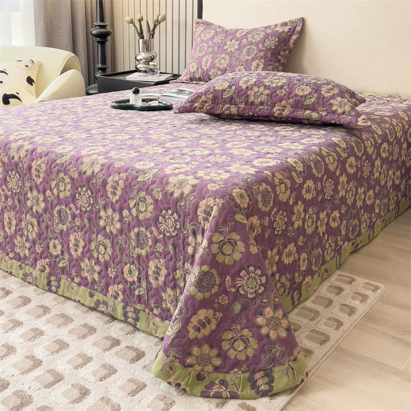 Diese Bettdecke aus hochwertiger Baumwollgaze fühlt sich unglaublich weich und leicht auf der Haut an. Mit aufwendigen Blumenmustern verziert, verleiht sie Ihrer Raumdekoration einen Hauch von Eleganz. Zusammen mit zwei Kissenbezügen ist sie die perfekte Wahl für den Alltag.