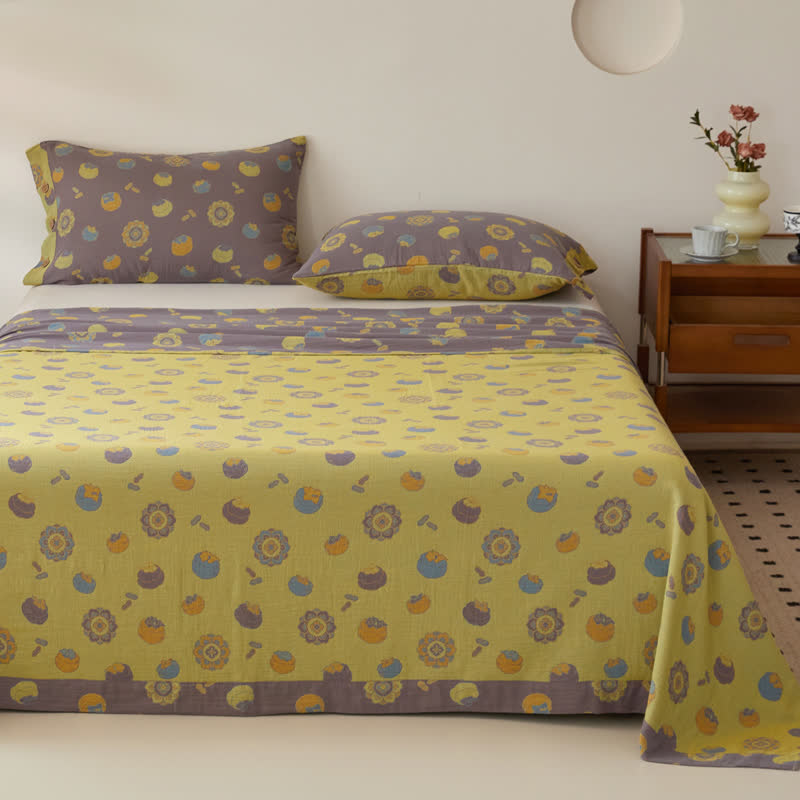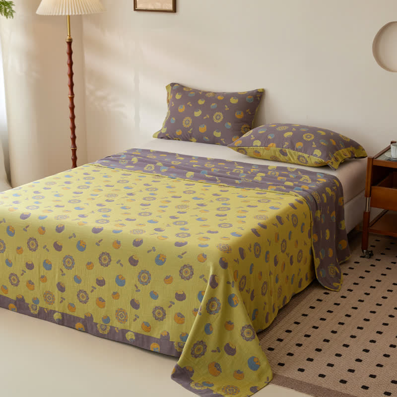 Die wendbare Vintage-Bettdecke aus garngefärbter Baumwollgaze mit Persimmon-Motiv ist ein Symbol für Glück und Wohlstand. Die Jacquardwebung aus 100% Baumwolle bietet eine weiche, atmungsaktive Textur, die die ganze Nacht über kühl und angenehm bleibt. Sie wird mit jeder Wäsche sanft weicher und verleiht Ihrem Zuhause Komfort, Charme und einen Hauch von Glück.