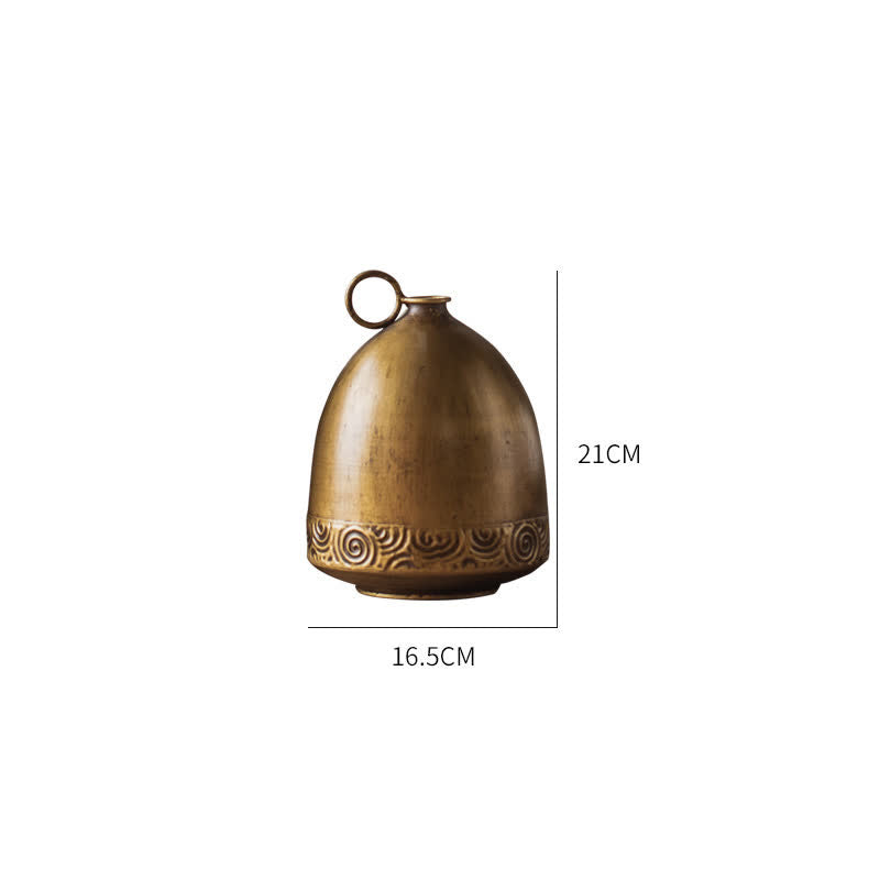 Diese Vase besticht durch schlichte Linien und elegante Bögen, die eine wunderschöne Landschaft schaffen. Die Retro-Aging-Technologie verleiht ihr einen modischen Touch und verkörpert einen Retro-Kunststil. Das gealterte Design ist mit aufwendiger Verarbeitung und polierter Oberfläche einzigartig und ästhetisch ansprechend.