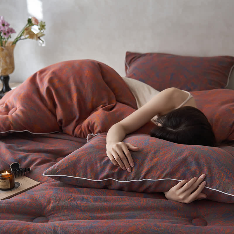 Unsere aufwendig gewebte Steppdecke besteht aus hochdichtem Baumwollgarn für Ästhetik und Haltbarkeit und verhindert Pilling. Jeder Baumwollfaden ist ein Geschenk der Natur und wurde sorgfältig verarbeitet, um seine ursprüngliche Textur zu erhalten. Die Füllung aus hochwertigem Kaschmir und Fasern ist leicht, widerstandsfähig und speichert die Luft perfekt für ein angenehmes Schlaferlebnis.