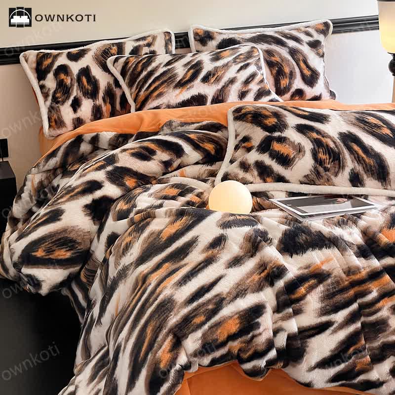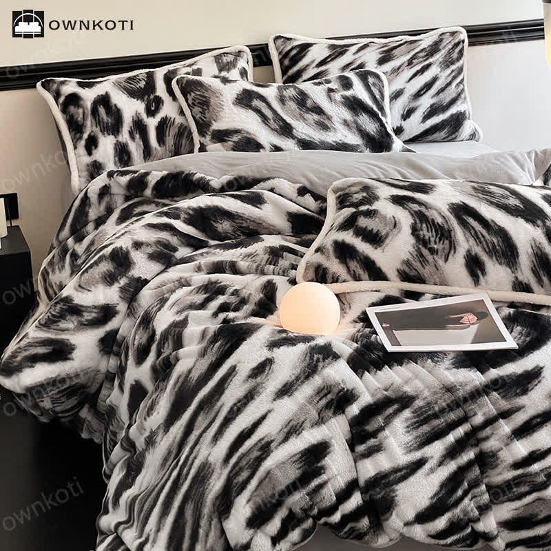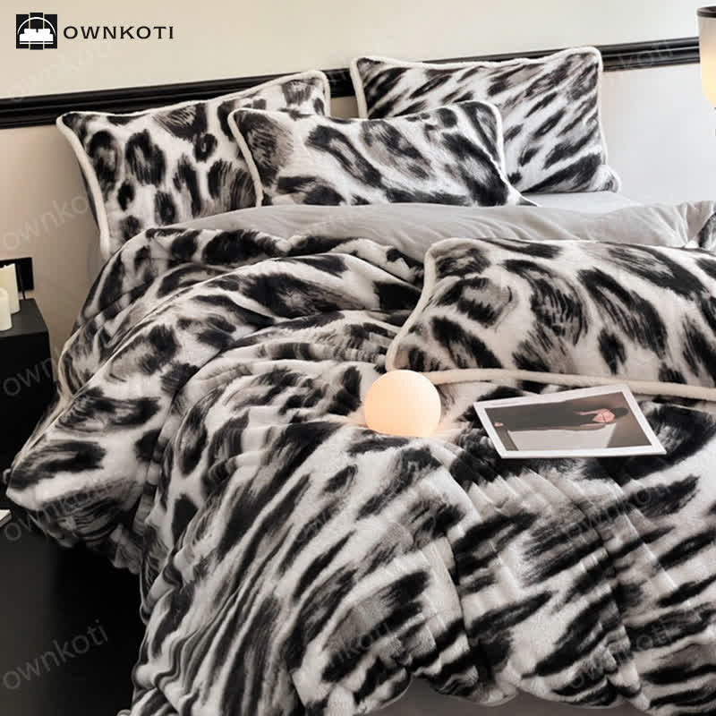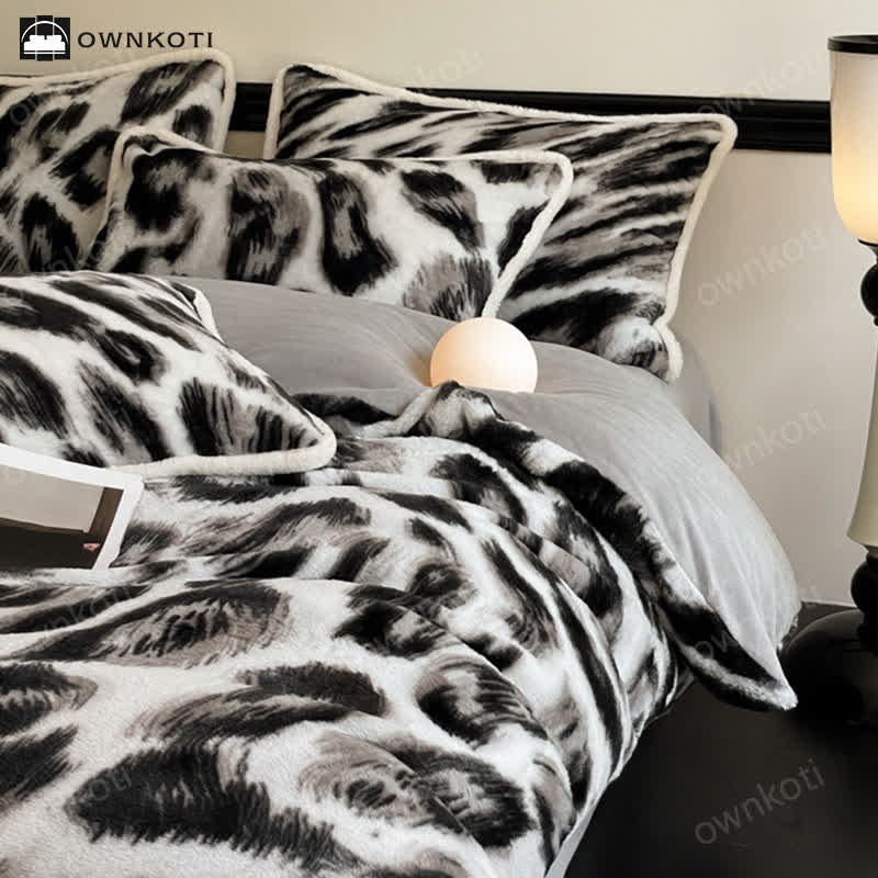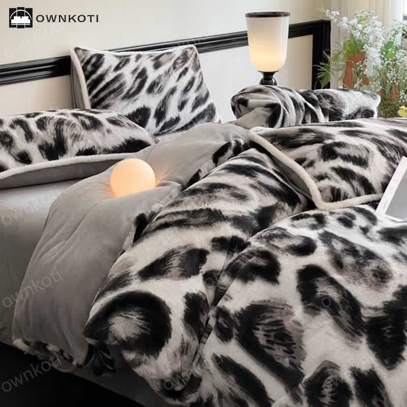 Warmes Bettwäscheset aus weichem Flanell mit Leopardenmuster (4-teilig)