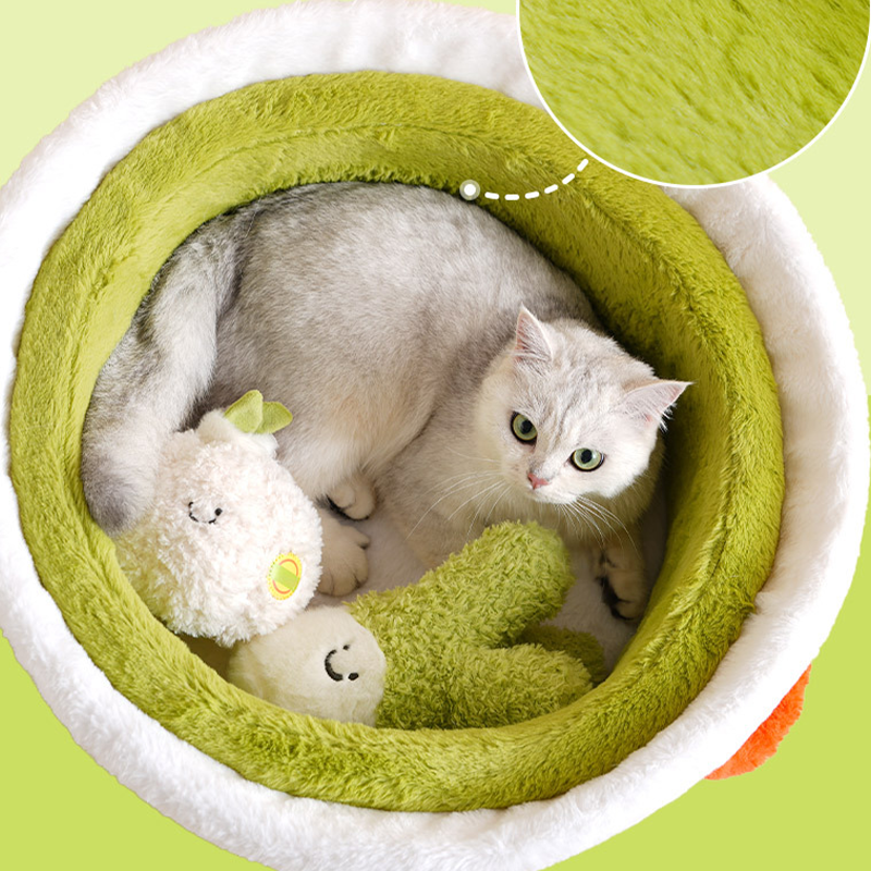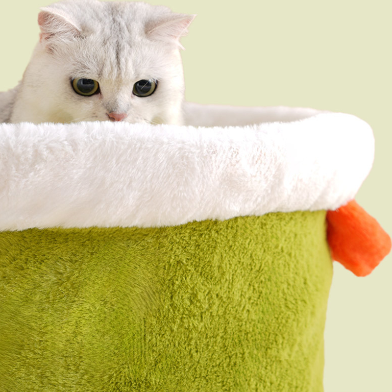 Dieses Haustierbett in süßer Plüschform umarmt Ihren pelzigen Freund warm und warm. Das dicke, isolierte Design sorgt für wohlige Wärme und süße Träume. Geräumig und weich, bietet es Katzen bis zu 9 kg Platz für erholsame Nickerchen. Das abnehmbare Kissen ermöglicht eine einfache Reinigung und das Bett behält seine Form lange.