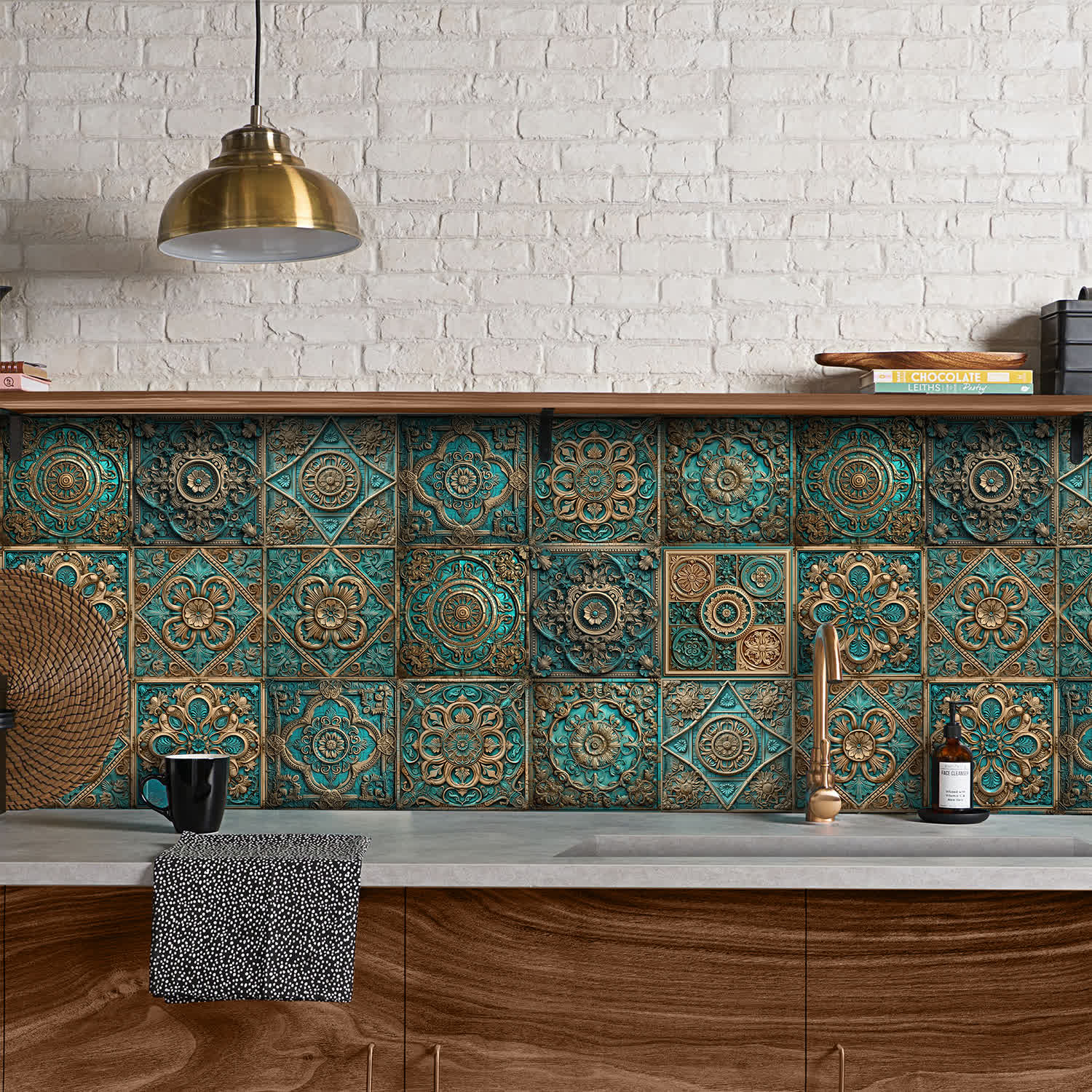 Verleihen Sie Ihrem Zuhause mit diesen kunstvoll gestalteten Mustern einen lebendigen und exotischen Charme. Einfach abziehen und auf eine glatte, saubere Oberfläche kleben – ganz ohne zusätzlichen Klebstoff. Die Aufkleber aus hochwertigem PVC sind wasserfest und langlebig und eignen sich daher perfekt für Küchen, Badezimmer und andere feuchtigkeitsempfindliche Bereiche.