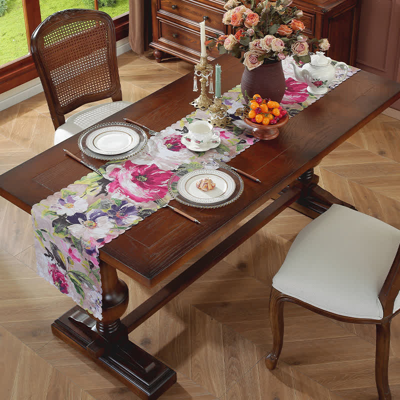 Das exquisite Ölgemälde-Design besticht durch leuchtende Farben und detailreiche Landschaften und verleiht Ihrem Essbereich Wärme und Kreativität. Ideal für legere und formelle Anlässe. Die einzigartige Wellenkantenoptik verleiht Ihrer Tischdekoration einen stilvollen Touch und wertet sie gleichzeitig ästhetisch auf. Gleichzeitig sorgt sie für einen weichen, fließenden Look, der zu verschiedenen Stilen passt.