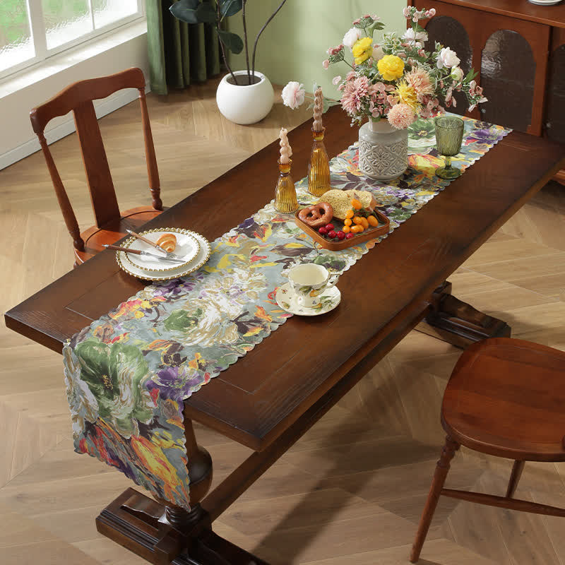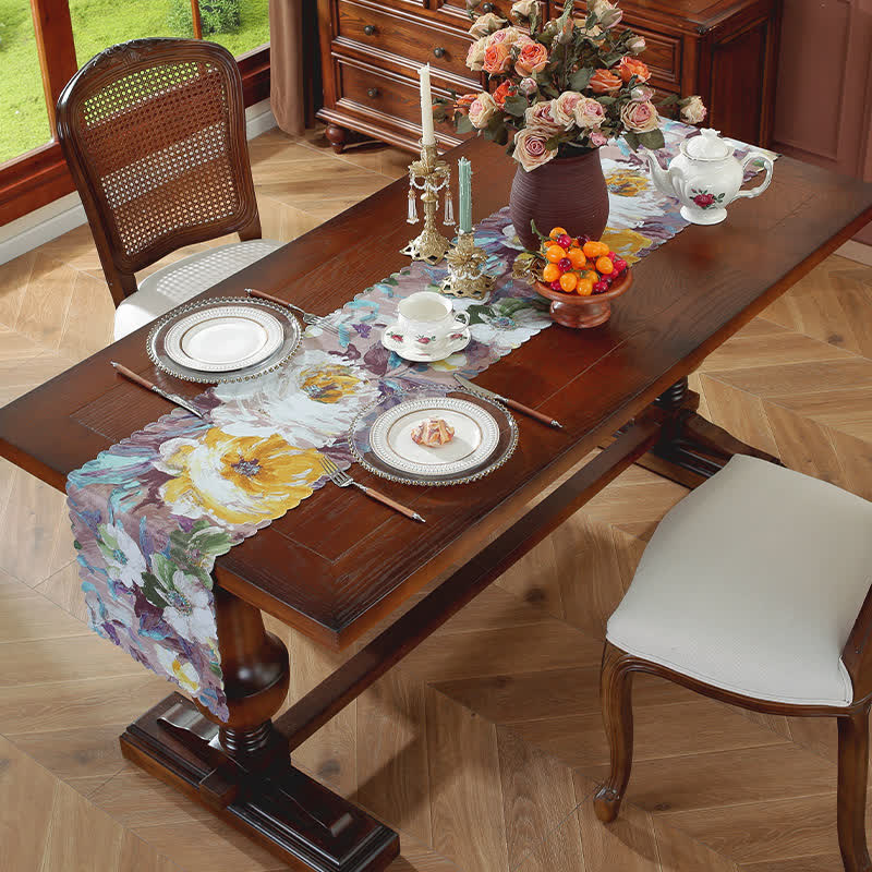 Wasserfester Tischläufer mit Ölgemälde und Wellenrand