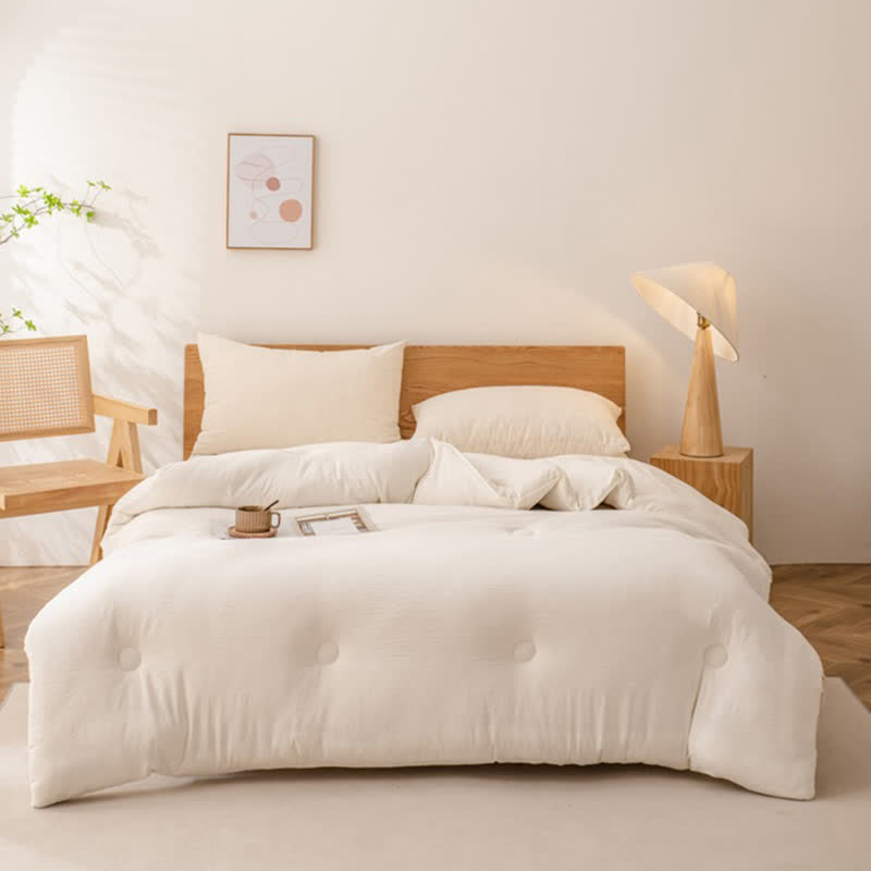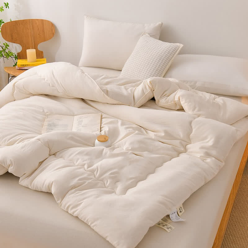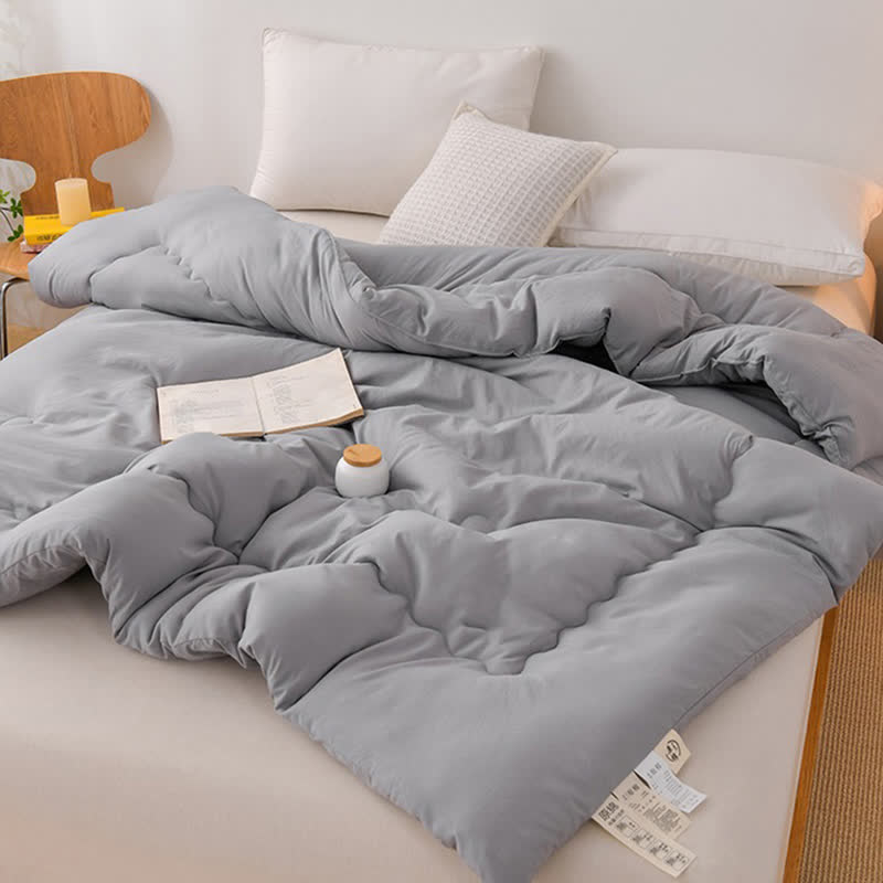 Diese Bettdecke aus gewaschener Baumwolle mit Sojafaserfüllung bietet ein weiches, brotähnliches Gefühl, das leicht und bequem ist – wie ein Wolkensoufflé. Die exquisite Steppverarbeitung unterstreicht die Schönheit der Bettwäsche und macht sie zu einer eleganten Ergänzung für jedes Schlafzimmer.