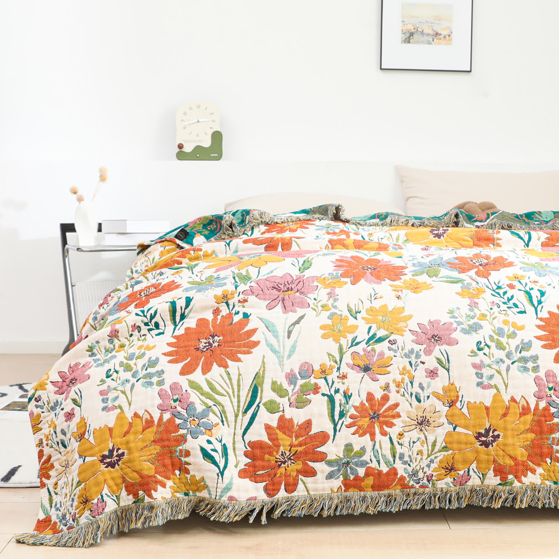 Wendbare Baumwollgazedecke mit Quasten und leuchtendem Blumenmuster