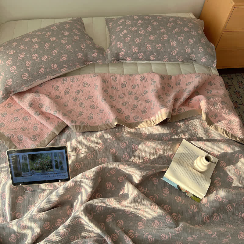 Wende-Bettdecke aus Baumwollgaze mit Rosenmuster