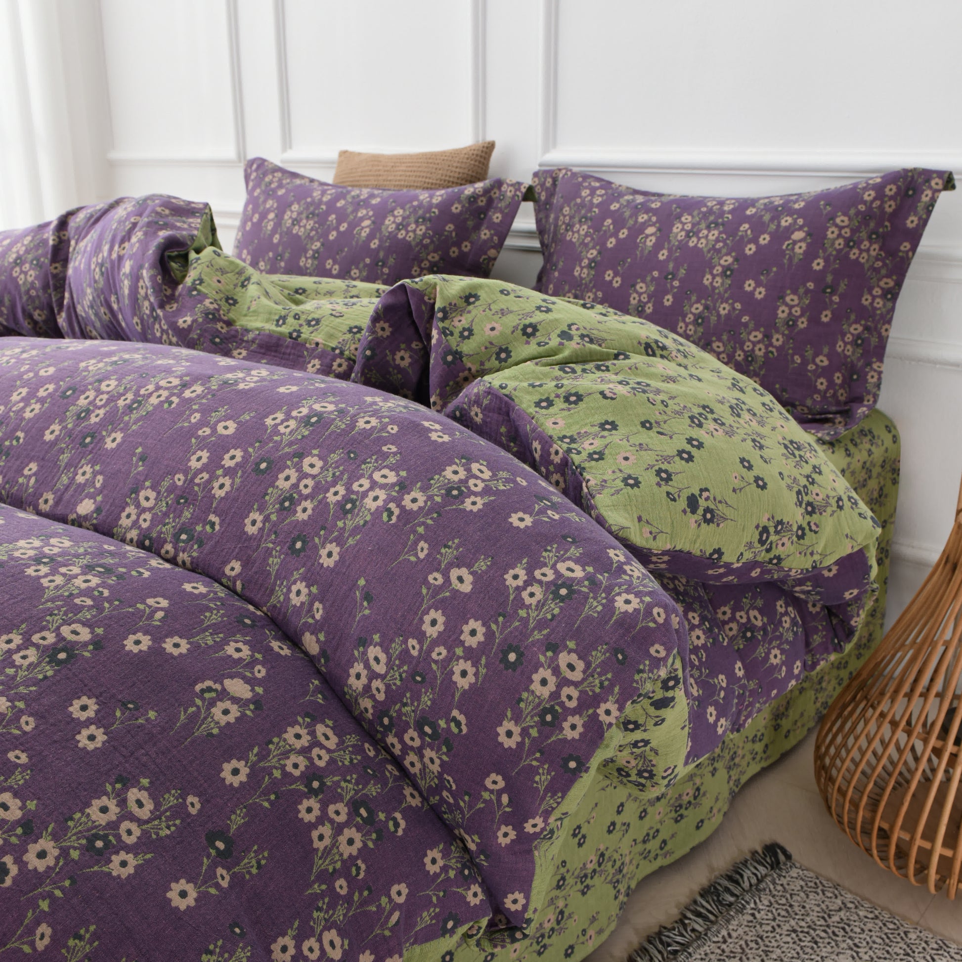 Wendebettwäscheset aus Baumwollgaze mit Blumenmuster (4-teilig)