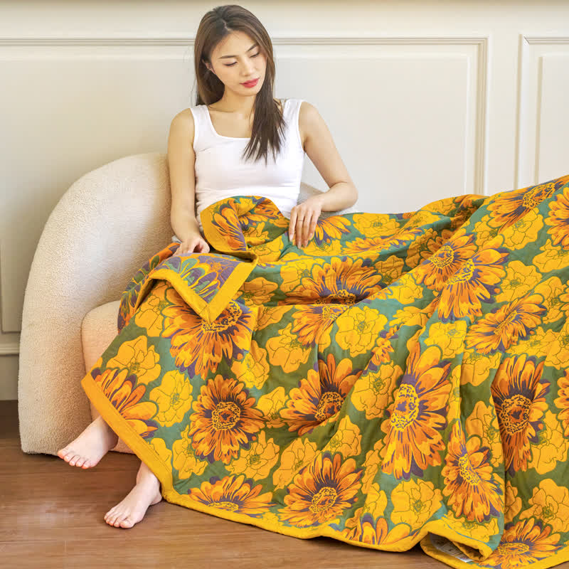 Diese Steppdecke aus hochwertiger Baumwollgaze ist leicht, atmungsaktiv und fühlt sich weich an. Sie bietet ganzjährigen Komfort ohne zu beschweren. Die lebendigen Blumenmuster verleihen jedem Schlafzimmer, Gästezimmer oder Wohnbereich eine fröhliche Atmosphäre.