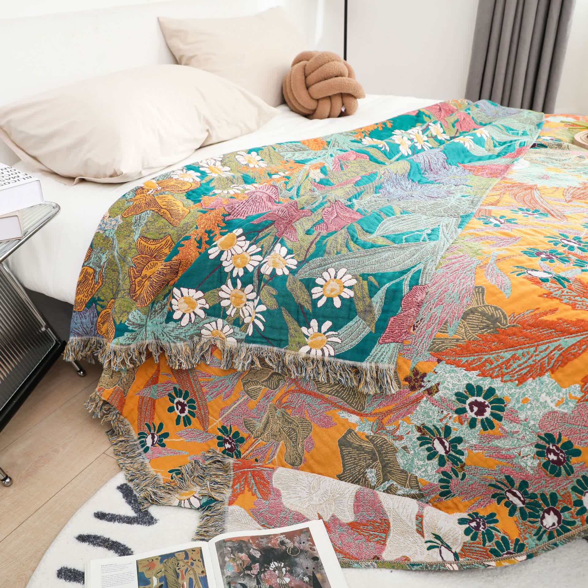 Die weiche Textur der Baumwollgaze bietet die ideale Balance aus Wärme und Atmungsaktivität – perfekt für gemütliche Nächte und erholsame Tage. Ob als klassische Tagesdecke oder als dekorative Schicht – die Wendedecke „Garden Flower“ aus Baumwollgaze verleiht jedem Schlafzimmer Charme. Genießen Sie die Schönheit der Natur und einen erholsamen Schlaf mit dieser exquisiten Decke.