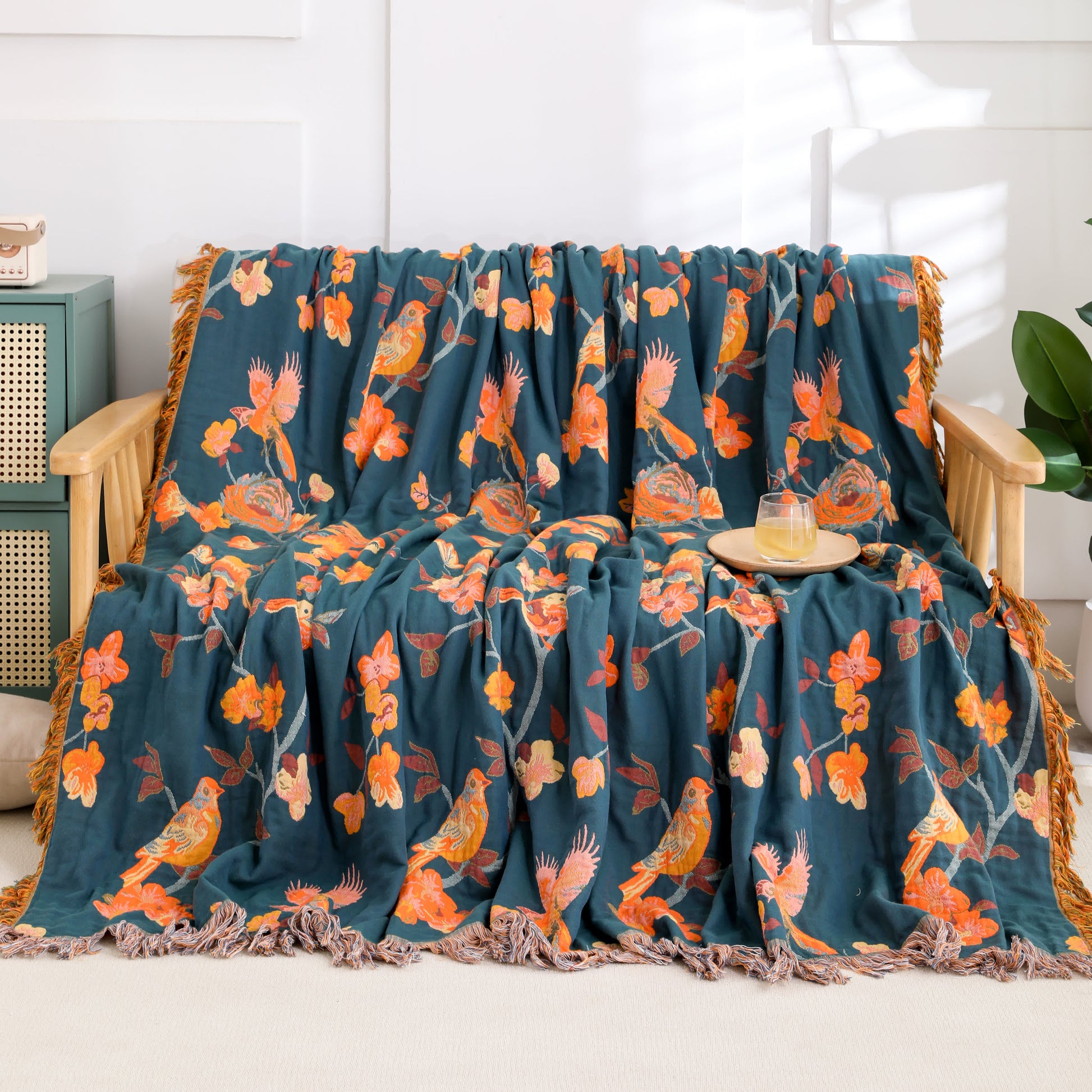 Wendesteppdecke aus Baumwolle mit Blumenmuster und Quasten „Magpie“