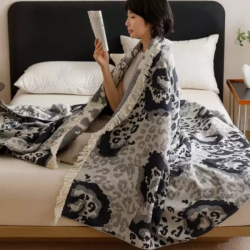 Entdecken Sie die Vielseitigkeit zweier unterschiedlicher Stile in einer Decke! Diese Decke aus 100% weicher Baumwollgaze bietet ein leichtes und dennoch warmes Tragegefühl und ist somit das perfekte Kleidungsstück für ganzjährigen Komfort. Das atmungsaktive Material sorgt für Behaglichkeit ohne Überhitzung.