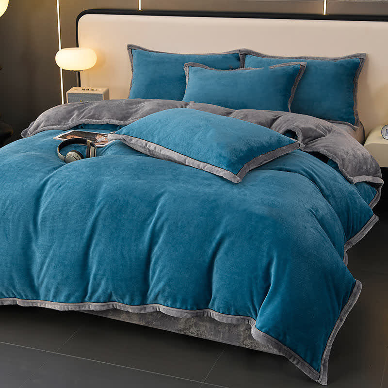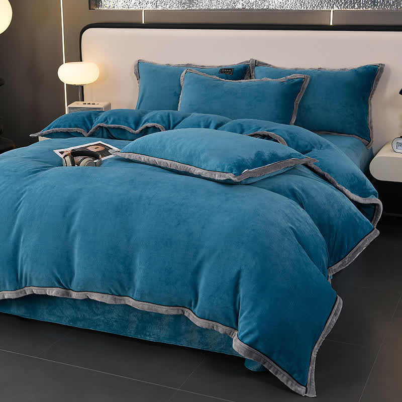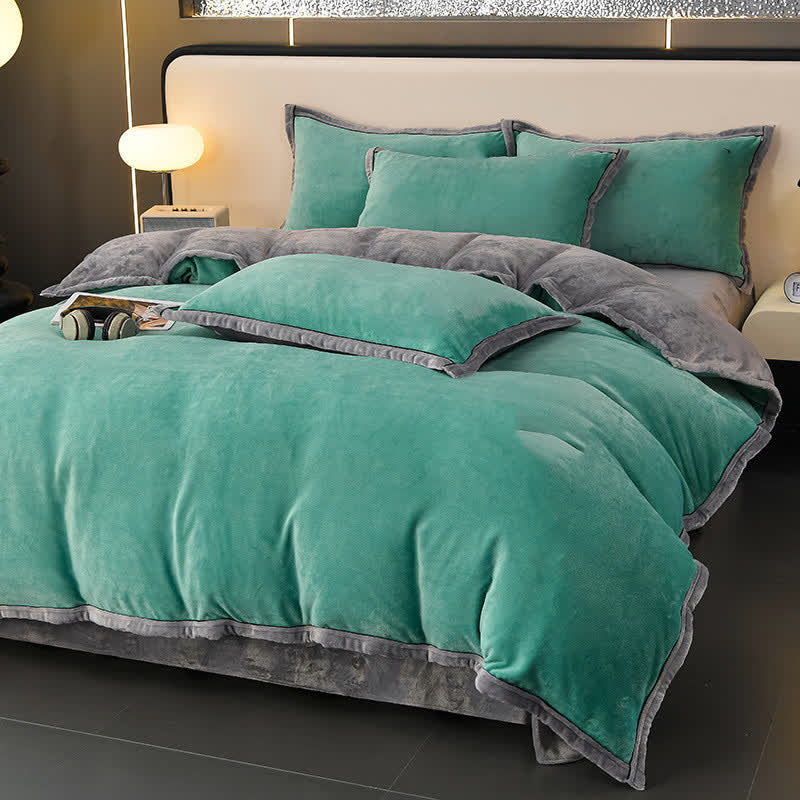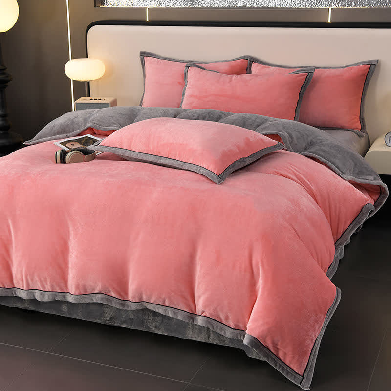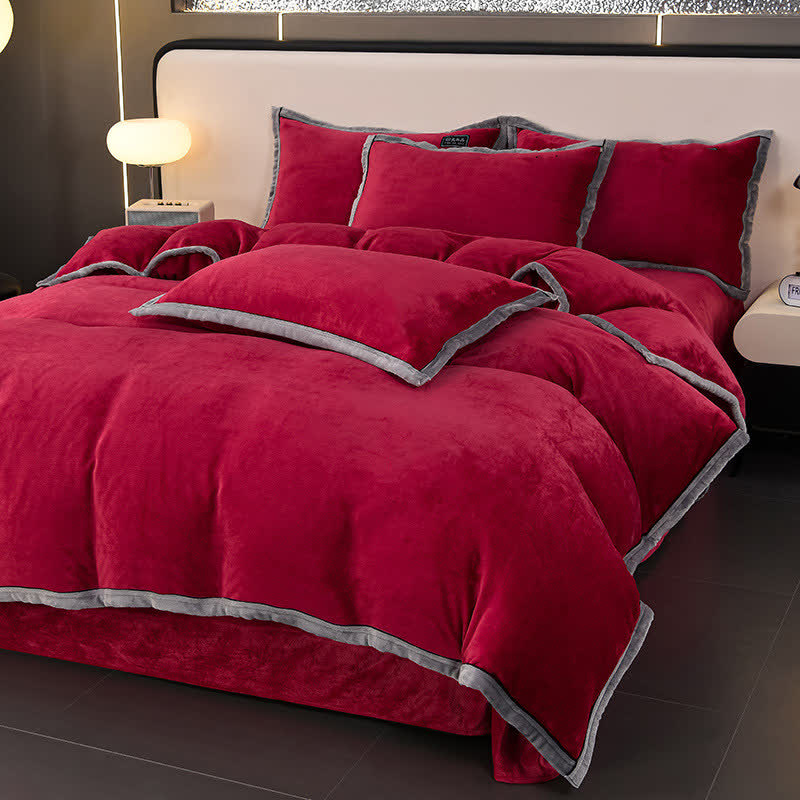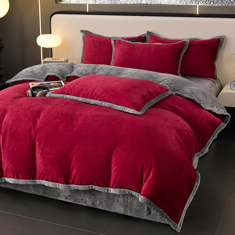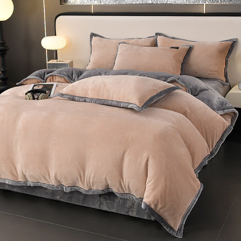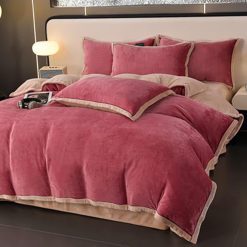 Winter-Fleece-Bettwäscheset in Volltonfarbe (4-teilig)