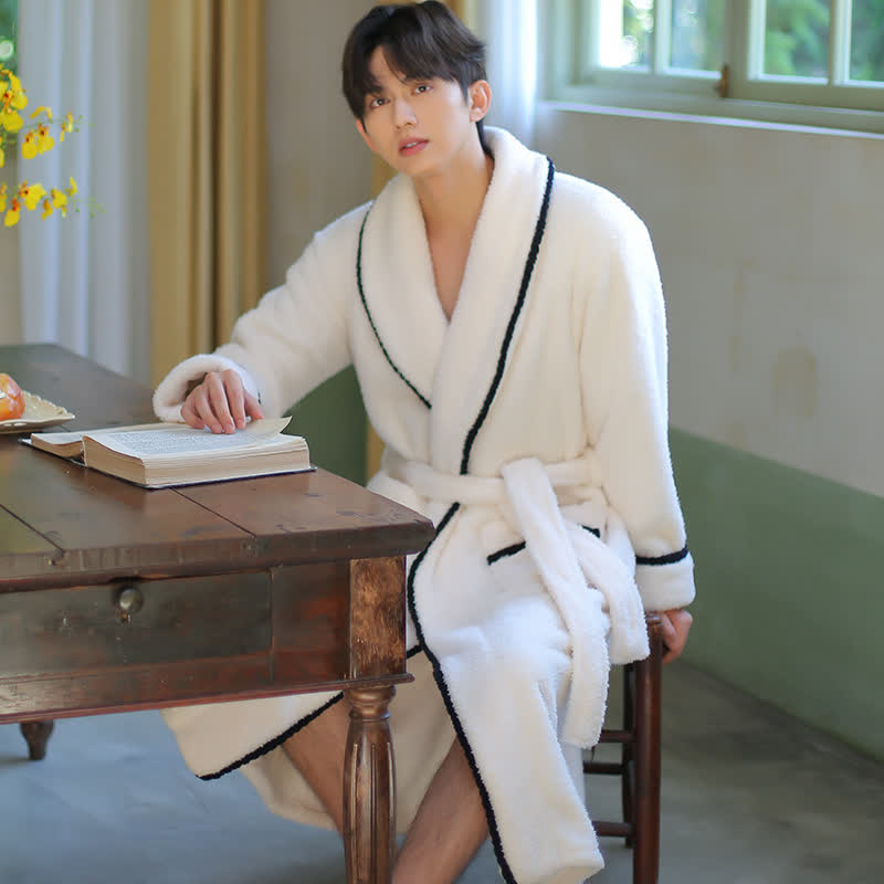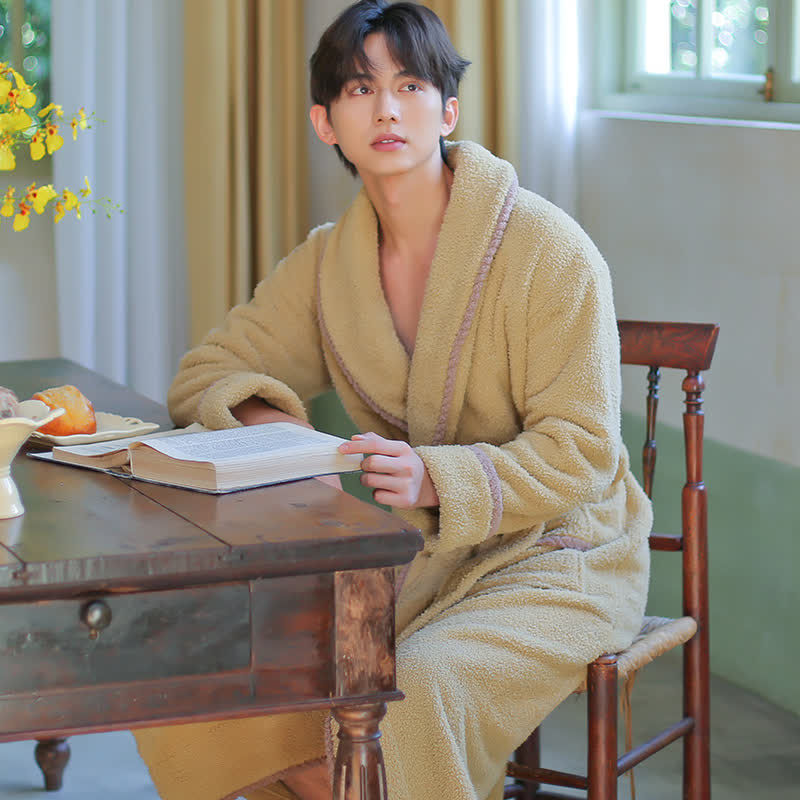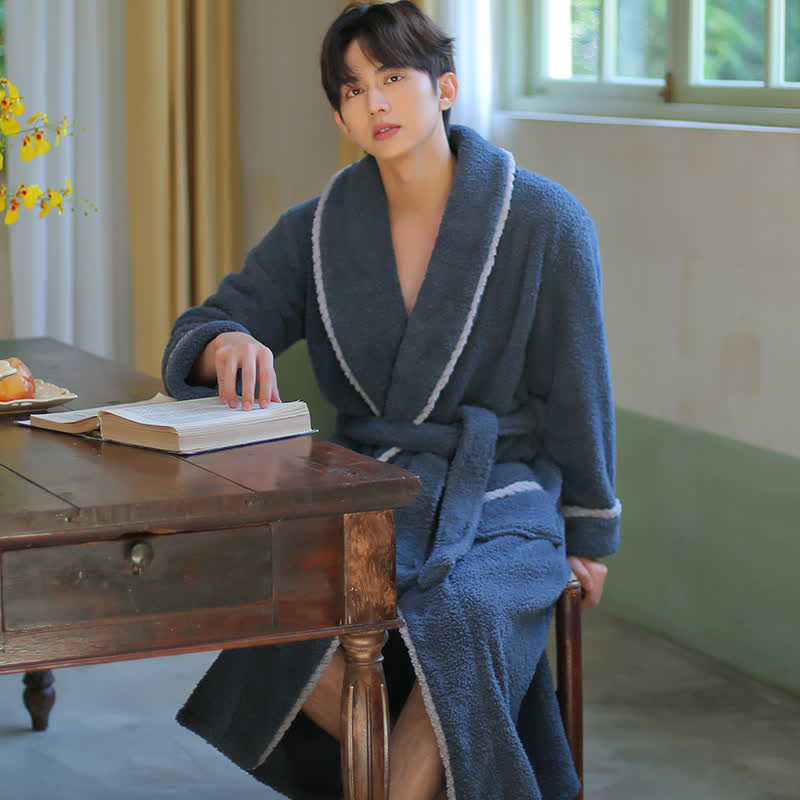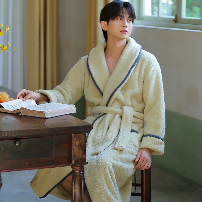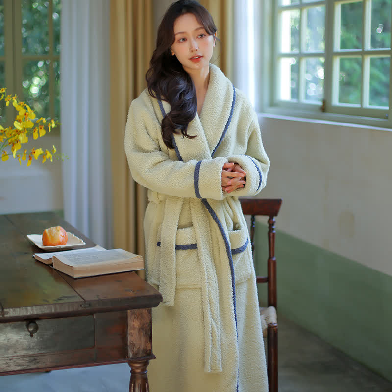Winter Fleece Paar Revers Ausschnitt Bademantel