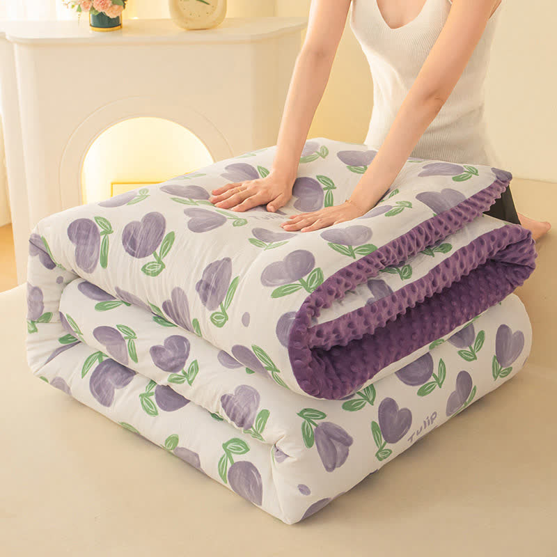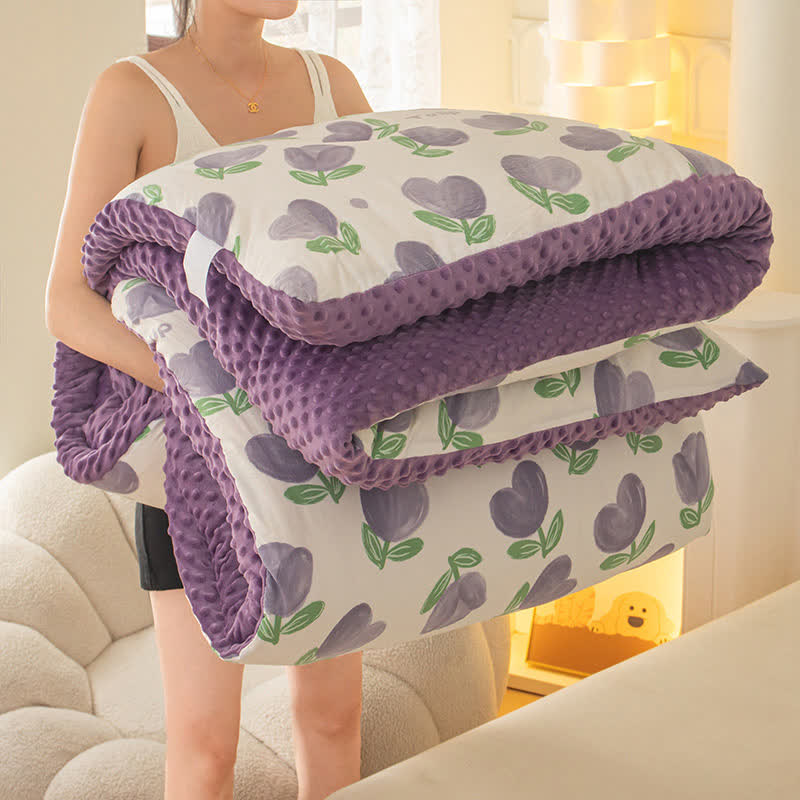 Die A-Seite dieser Steppdecke besteht aus hochwertiger gewaschener Baumwolle. Diese bietet hervorragende Feuchtigkeitsaufnahme und Atmungsaktivität sowie eine weiche, glatte Textur für ein angenehmes Hautgefühl. Die B-Seite besteht aus schwerem, gepunktetem Plüschstoff, der weich und flauschig ist und ein wohliges Gefühl vermittelt, das an eine Mutterumarmung erinnert.